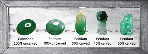 Cutting relates to the style and craftsmanship on the Jadeite. The imperfection of the crystal formations in the Jadeite determine the “art and craft” to be carried out and the degree of expertise to craft the raw material to its fullest potential.